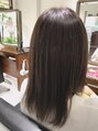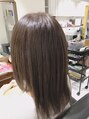 少しクセがあるのでまとまりやすいようにカットラインは少しフラットになっています。カラーはアッシュとベージュの間くらい。暖色系の色味を混ぜて柔らかい印象にしました。