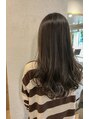赤みのないベージュ系カラーにすることでツヤ・透明感を失いません。秋・冬の洋服にも合わせやすいです!!カットも同様にツヤ感をキープするためにレイヤーを低い位置に入れ、ダメージレスなカットをしております。