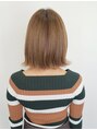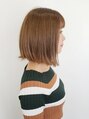 切りっぱなしボブ。前下がりになっているので、ご自身で乾かしたりスタイリングするときに楽チンなスタイルです。本当の切りっぱなしにしてしまうと重いので、毛先に少しレイヤーを入れることによって、動きの出やすいスタイルにしました。