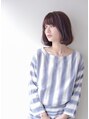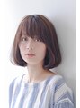 あご下のレングスに設定した、ワンレングスのボブスタイルです。毛先にワンカールのパーマをかけて、クラシックなカットベースをカジュアルな印象にしました。前髪は、目の上ギリギリにカットして束感がでるように量感調整しました。