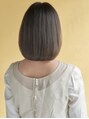 小顔に見えるフェイスラインのデザインとやわらかいカットで大人かわいいを演出。毛先はダメージしにくいよう段を入れずにカットしています。やわらかさが出て、ペタンを解消できるよう毛先のみダメージレスなカットでほんのり軽くしています。