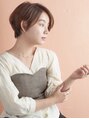 スッキリ小頭に!デキる女風ショート。スッキリとしたえり足がポイント。えり足の髪が膨らみやすいとお悩みの方に、内側を剃って短くするか、少し厚みを残して重さで広がりを抑えるカットを得意としています。ショートのフォルムを大切にカットします。