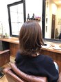 顔まわりとすそに段差を入れて毛先を軽くした動きをつけやすいミディアムのスタイルです。前髪は長めに流してかき上げてもOK!肩についてハネやすい長さなので、あえて外ハネさせても良いスタイルです!