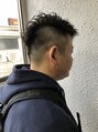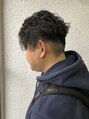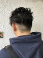 ややアシメ気味に2ブロックの高さ違いで刈り上げ、強めにパーマを掛けてあります。生え癖を考えて刈り上げの高さを設定しますので、片方のサイドを思いっきり見せるアレンジも、センター分けでも決まります☆