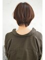 顎上5cmのショートボブベースです。トップは動きが出やすい様にレイヤーをいれ動きを出します。前髪は目にかかる長さで設定。カラーは8トーンのマロンブラウンで艶を出しました。
