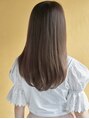 ロングヘアのお悩みは、ぺたんとしやすく顔周りのクセが気になる方が多いです。ベースの長さを整え、表面の毛だけ段を入れて量感を調整すると表面にふわっとした毛流れができ解消できますよ。カラーは、グレージュで外国人風のツヤ、透明感をアップさせて。