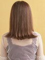 くせ毛風切りっぱなしがかわいい。オン眉バングで目力アップ。秋メイクも楽しめるトレンドミディアムヘアに。トップがペタンとなりやすいので、表面の部分は長さを変えて動きを出しやすくカットしています。くせ毛を活かしたカットが得意です。