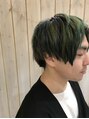 根元から毛先に向かうグラデーションカラーにローライトでダークさを追加。色味のベースは何色かのグリーンをランダムに。グリーン単品じゃないからこそ動きもでる。奇抜になりすぎないチャレンジカラー。