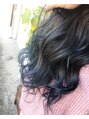ブルー系のグラデーションカラー。この冬は彩度高めの暗髪ヘアおすすめです。巻き髪とグラデーションカラーは合わせやすいですよ!