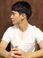 アウトラインすっきりのショートスタイルです。後ろは刈り上げから繋げて頭の形が良く見えるようにし、前髪はやや長さを残して横に流す流れが出る様にしています。