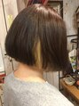 重ためのボブにインナーカラーで、印象的なスタイルです。