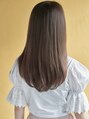 ロングヘアのお悩みは、ぺたんとしやすく顔周りのクセが気になる方が多いです。ベースの長さを整え、表面の毛だけ段を入れて量感を調整すると表面にふわっとした毛流れができ解消できますよ。カラーは、グレージュで外国人風のツヤ、透明感をアップさせて。