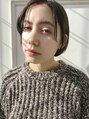 短めのボブヘアー。耳にかけてタイトにすれば、カジュアルクールな雰囲気に。