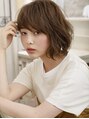 ストレートタッチのボブに、アイロンでスパイラル巻きにして、外ハネや内巻きをミックスさせました。内巻きシルエットを外ハネシルエットにチェンジして、ラフなイメージに。