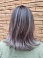 全頭ブリーチしている髪の毛を、暗い部分を作りながらグラデーションをつくっていきます。表面はハイライトをいれていきます。