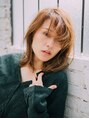外ハネベースにランダムなカール感を加えて重ためのスタイルもふんわりしたスタイルに。外ハネのカジュアル感を抑えるために目にかかる長めのバングでクールな雰囲気に仕上げています。