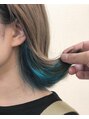 バレイヤージュスタイルですサイドにアクセントカラー ターコイズブルーが入ってますケアブリーチでの施術なのでダメージは少ないです