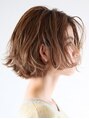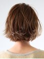 ワンレングスの無造作かきあげボブで グッと大人のスタイルに。 ウェットな毛束が揺れるたび、瞳の印象を 強くします。根元は暗めのグラデーションカラーにし、伸びても目立たない上、こなれた雰囲気をキープ。