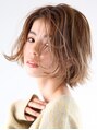ワンレングスの無造作かきあげボブで グッと大人のスタイルに。 ウェットな毛束が揺れるたび、瞳の印象を 強くします。根元は暗めのグラデーションカラーにし、伸びても目立たない上、こなれた雰囲気をキープ。