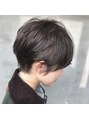 コンパクトなマッシュラインのショートヘア。全体にバームを揉み込んで簡単スタイリング