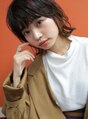 フェイスラインをマッシュに切り込んだウルフスタイルにやや強めのパーマで動きを!カールした前髪とくしゃっとランダムな質感が可愛いです♪