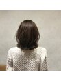 切りっぱなしボブに表面に動くレイヤーと、ハイライトを足してオリジナルのデザインにしました。ベースカラーのグレージュは透明感もあってハイライトとの相性も良いです。
