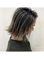 外国人風ハイライトのボブ☆毛先部分をブリーチをして黄味が出ないようにしてから、アミノ生ケラチントリートメントでダメージの補修と色持ちを良くしてからハイライト+グレージュでカラー☆メルトカラーや白髪ぼかしにも使える万能カラー