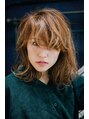 外ハネベースにランダムなカール感を加えて重ためのスタイルもふんわりしたスタイルに。外ハネのカジュアル感を抑えるために目にかかる長めのバングでクールな雰囲気に仕上げています。