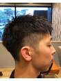 片側ブロックで若干アシンメトリーにつくってます。毛流れ強い方などオススメです。