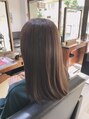 カットはノンレイヤーで余分な重さのみ取ります。カラーはイルミナカラーでベージュをベースに黄色味は抑えツヤ感を重視して調合しました。
