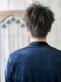 計算された無造作感とマットな質感で、モード&カジュアルに仕上げた無造作ショート。デコ出しアップバングと落ち着いた黒髪で清潔感をアピール。ビジネスでも使えるビジカジにアップデート。オールバックもクール。