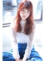ラフなカールで抜け感とオレンジレッド系カラーでガーリー感を。大きめのコロンとしたカールがポイントです。アンニュイな雰囲気が今の季節にぴったり。