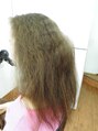 細かいパーマのような縮毛ダメージ処理剤をタップつけて施術しました。8年 在日アメリカ人ナチュラルカラー毛