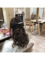 パーティーセットのダウンスタイルです。カールを少し強めに巻いて仕上げ、毛質の細い方でも長時間もたせられるようにしてあります。