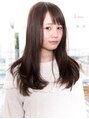 透明感のある極ゆるナチュラルセミロング。毛先は少し曲げるだけで巻きすぎない方が大人っぽい。ルーズに揺れる髪がラフ感を出し、前髪は少し肌を見せて透け感を作る。カラーは透明感のでるベージュ系でやわらかい印象にしました。