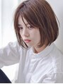 あごラインに長さを設定。バックからグラデーションにカットして前下がりのシルエットにします。前下がりのコンパクトなボブスタイルで、シャープな印象のスタイルです。