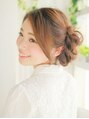 耳後ろにまとめたシニヨンが、女性らしいフェミンなシルエットのアレンジスタイル♪