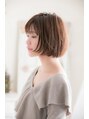 重めのシルエットで唇ラインのボブ。前髪は透け感シースルー。カラーは、コットンピンク
