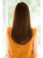 ワンレンベースでサイドに向かってやや前上がりに。やわらかさと丸みを出したベーシックなデザインのストレートロングで高感度UP☆