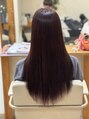 アデクシーカラーの深みのあるボルドー・ルビーの色合いが髪のツヤと相まって、髪全体に上品な印象を与えていて、とても魅力的に映ります。