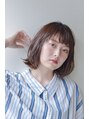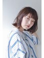 あご下にレングスを設定、トップにだけレイヤーをいれて軽さをプラス。ラフに動くカールが可愛いボブスタイルです。パーマは、弱酸性の薬剤でダメージレスにかけています。
