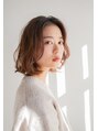 肩上のワンレングスベース。表面にのみレイヤーを入れ、ストロークカットで柔らかさと毛先の束間を表現しました☆ハチ下はミックス巻き、表面は根元から緩く大きいパーマをかけ、動きがあり、再現性の高いスタイルにしました☆