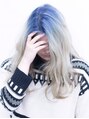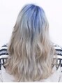 根元をインディゴブルーにしたデザインカラー。スタイリングは無造作にウェーブを出してあげると、いい感じにグラデ感が出せます。
