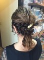 ミディアムヘアでも楽しめるダウンスタイル!ルーズに全体をまとめ上げ、下している毛先の部分は波のウェーブをしっかりつけました!カラーでポイントカラーを入れているので編んだ部分にデザインが出て可愛いです(^^)