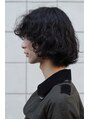 顔回りを切り込んだボブベースのウルフスタイルです。重さをもたせたカットをベースに、やや強めのパーマを加えて、ミュージシャンのような尖ったイメージを作りました。