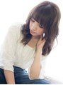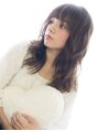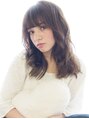 中間から毛先にデジタルパーマをかけたウェーブスタイル。前髪は厚めバングで目元を強調しました。