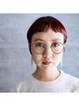 オレンジなマッシュショート。ショートバングはメガネとの相性もよくておすすめ