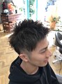 直毛で、髪の量が多いお客様です。束感が出やすく、WAXをつけるだけで簡単に抑える事ができるようにカットしてあります!!カラーは黒髪からの1回染めです。