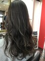 黄色く褪色しやすい髪質なので、通常よりも大目にラベンダーを入れて相殺しました。染毛前の明るさを活かし、透け感のあるカラーリングにしています。