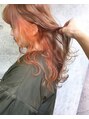 ハイトーンのベースカラーにオレンジのインナーカラーが入ってます。ブリーチは通算二回必要ですが凄く可愛い色になりますよ^ ^